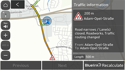 Bluelink Recalculate: volve calcular a ruta e reflicte a información de tráfico.