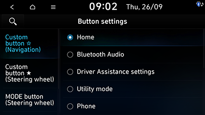 Custom button ★ (Steering wheel) (se tiver): asígnalle unha función ao botón ★ personalizado do volante.