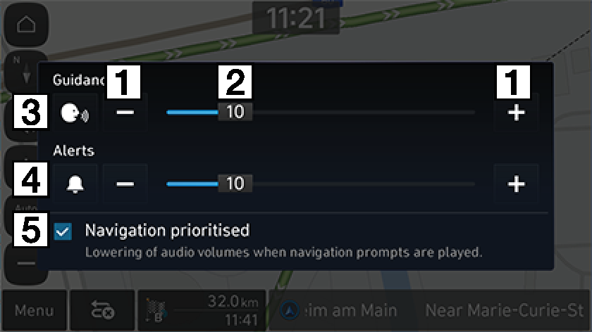 Axusta o volume de navegación. Para máis información, consulte a sección “Volume do sistema de navegación”.