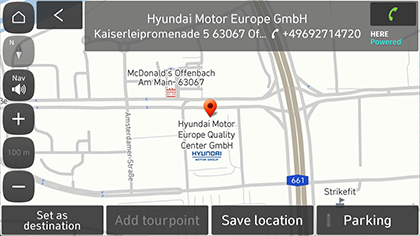 Map centre: busca servizos de Hyundai preto do cursor de desprazamento. Só dispoñible cando se despraza a pantalla do mapa.