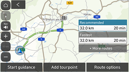 Seleccione a ruta desexada e prema Start guidance. As indicacións de ruta comezan a amosarse tendo en conta as opcións de ruta.