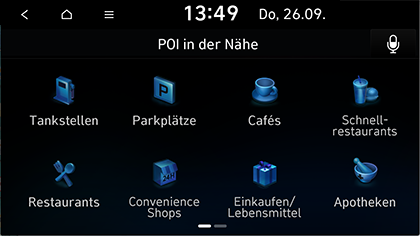 Bei verschiedenen Suchmethoden kann ein POI (Point of Interest) als Ziel angegeben werden. Je nach Modell, Option und Land können sich manche Bildelemente vom tatsächlichen Bildschirminhalt unterscheiden.