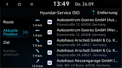 Aktuelle Position: Sucht nach Hyundai-Diensten in der Nähe der aktuellen Fahrzeugposition.