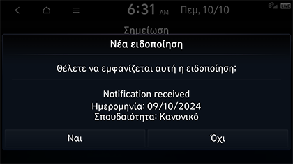 Όταν λαμβάνεται μια νέα ειδοποίηση, αναδύεται το παράθυρο ειδοποίησης. Πατήστε Ναι ή Όχι.