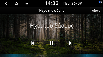 ] > Πηγές πολυμέσων > Ήχοι της φύσης ή κάντε εναλλαγή μέσω του κουμπιού MODE στο τιμόνι. -