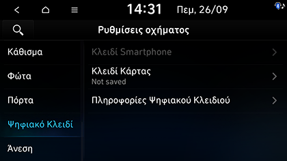 Πατήστε SETUP > Όχημα > Ψηφιακό Κλειδί.