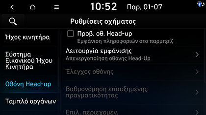 Πατήστε SETUP > Όχημα > Οθόνη Head-up.
