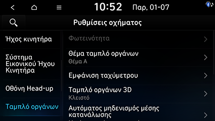 Θέμα ταμπλό οργάνων: Επιλέγει το θέμα του πίνακα οργάνων.