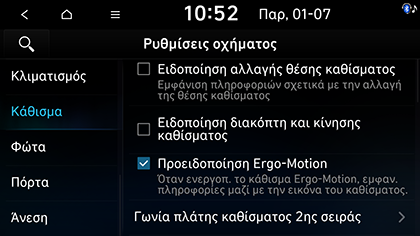 Προειδοποίηση Ergo-Motion: Όταν το κάθισμα ergo-motion ενεργοποιείται, οι πληροφορίες λειτουργίας εμφανίζονται με την εικόνα του καθίσματος.