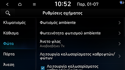 Πατήστε SETUP > Όχημα > Φώτα.