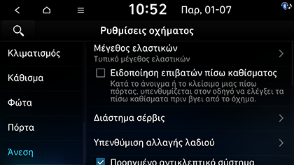 Πατήστε SETUP > Όχημα > Άνεση.