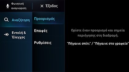 Ορισμένες εντολές πλοήγησης (Search address / Find POI / Find <POI category>) δεν υποστηρίζονται στα Πορτογαλικά, Πολωνικά, Σουηδικά, Τουρκικά, Τσέχικα, Δανικά, Νορβηγικά, Ελληνικά και Βουλγαρικά. Αλλάξτε τη γλώσσα συστήματος σε άλλες γλώσσες για να χρησιμοποιήσετε αυτές τις εντολές.