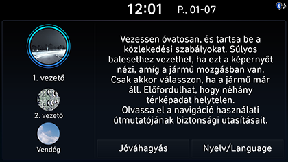Nyomja meg a Jóváhagyás gombot a 1. vezető, 2. vezető vagy a Vendég lehetőség kiválasztása után. További részletekért tekintse meg a „Profil” részt.