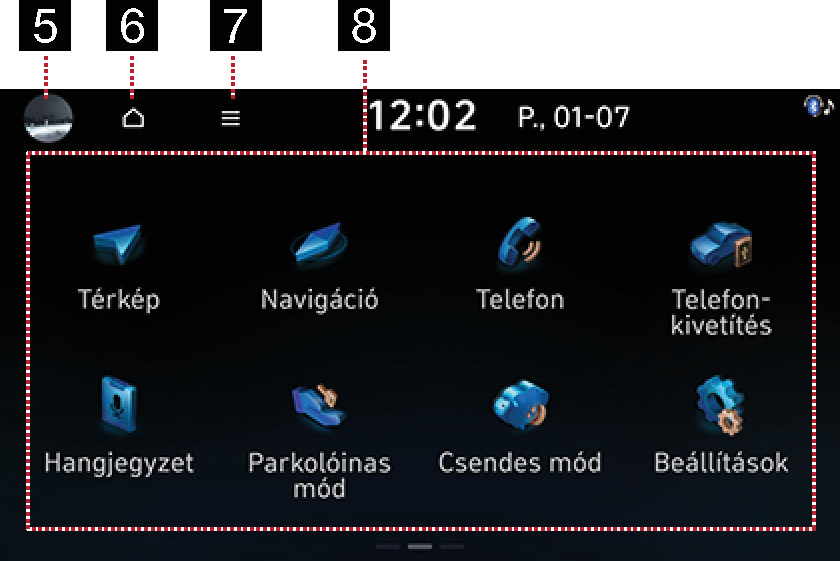 A kiválasztáshoz nyomja meg a kívánt menüt a képernyőn.