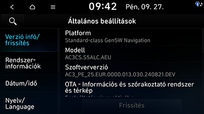 Ezzel megnézheti a szoftver verzióját, a firmware verzióját, a navigációs applikáció verzióját, a térkép verzióját és a készülék azonosító számát.