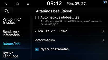 Automatikus időbeállítás (ha felszerelt): automatikusan, a jármű aktuális helye alapján beállítja az időt.