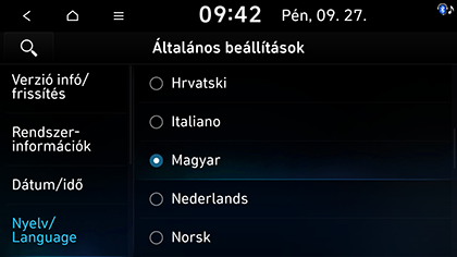 Nyomja meg a SETUP > Általános > Nyelv/ Language gombot.
