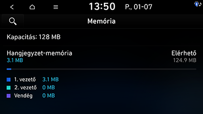 Ellenőrizheti a hangjegyzethez tartózó memóriahelyet (Összes tárhely, felhasznált memória, fennmaradó memória).