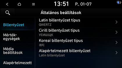 Latin billentyűzet típus: a QWERTY, QWERTZ, AZERTY vagy ABCD billentyűzet kiválasztása.