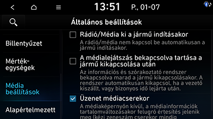 Rádió/Média ki a jármű indításakor: A rádió/média kikapcsol a jármű leállításakor, és a jármű újraindításakor nem folytatódik.