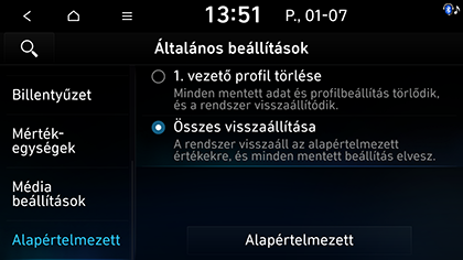 Az aktuális profilt vagy az egész rendszert is alaphelyzetbe állíthatja. Válassza ki a kívánt elemet, majd nyomja meg a Alapértel-mezett > Igen gombokat.