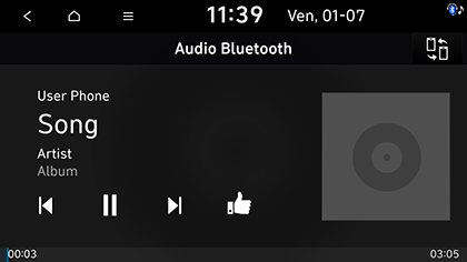 Premere MEDIA sull’unità principale. Viene visualizzata la schermata Audio Bluetooth.