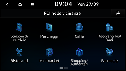 Destinaz.: ricerca POI in prossimità della destinazione corrente. Disponibile solo quando è impostata la destinazione.