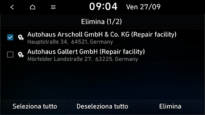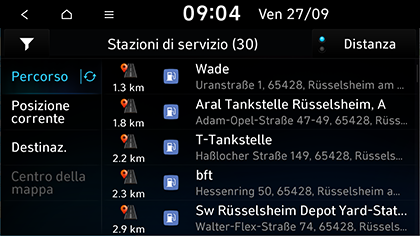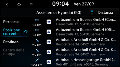 Percorso: Cerca i servizi Hyundai lungo il percorso corrente. Disponibile solo quando è impostata la destinazione.