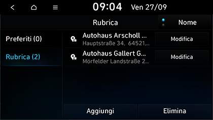 È possibile impostare come destinazione una posizione salvata nel menu Rubrica. Per usare efficacemente questa funzione, le destinazioni verso le quali si viaggia più spesso dovrebbero essere salvate in anticipo.