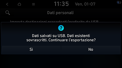 Premere SETUP > Navigazione > Funzioni automatiche > Dati personali > Esporta destinazioni precedenti e preferite in USB.