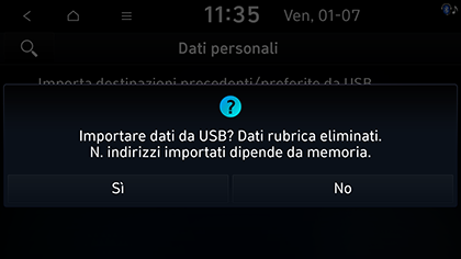 Premere SETUP > Navigazione > Funzioni automatiche> Dati personali > Importa destinazioni precedenti e preferite da USB.