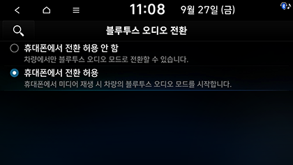 휴대폰에서 전환 허용: 연결된 휴대폰에서 블루투스 오디오를 제어하는 경우, 블루투스 오디오 모드가 자동으로 활성화되어 사용자가 휴대폰의 오디오 재생을 제어할 수 있습니다.