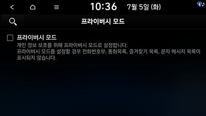 개인 정보를 보호하기 위한 프라이버시 모드를 설정할 수 있습니다. 프라이버시 모드를 설정하면 연락처, 통화 기록, 즐겨찾기, 메시지 등이 표시되지 않습니다.