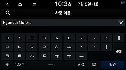 키패드를 이용하여 원하는 이름을 입력하고 확인을 누르세요.