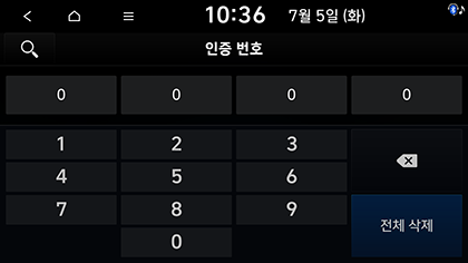 인증번호는 휴대 전화와 자동차 시스템 간의 블루투스 연결에 사용되는 4 자리 인증 코드입니다. 기본 인증번호는 0000으로 설정되어 있습니다.