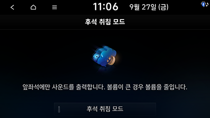 이 모드에서는 앞좌석에서만 라디오와 미디어가 재생됩니다. 저소음 모드를 켜려면