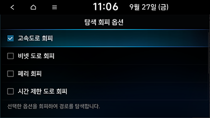 경로 탐색 옵션을 누르세요. 원하는 회피 옵션을 선택하고 [