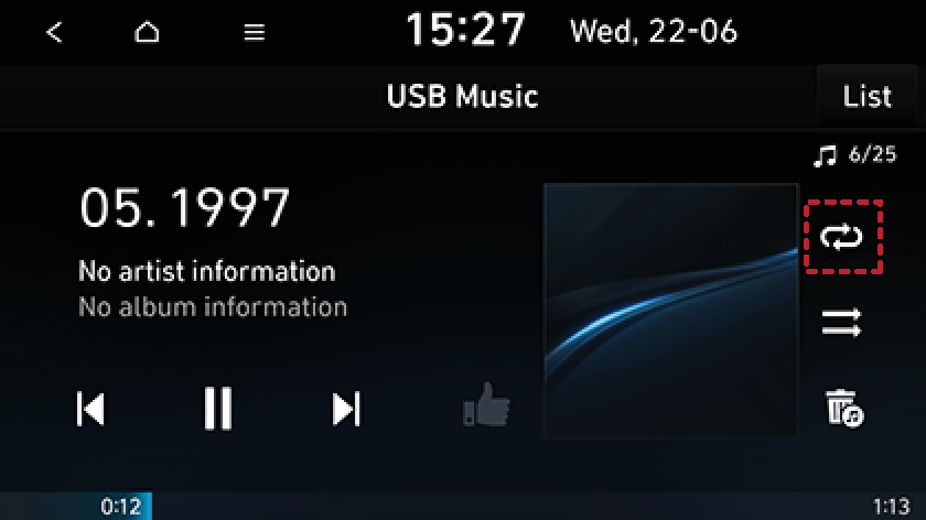 Pašreizējais atskaņošanas fails tiek atskaņots atkārtoti.