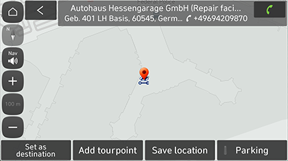 Map centre: meklē Hyundai pakalpojumus ap ritināšanas atzīmi. Pieejams tikai tad, ja tiek ritināts kartes ekrāns.