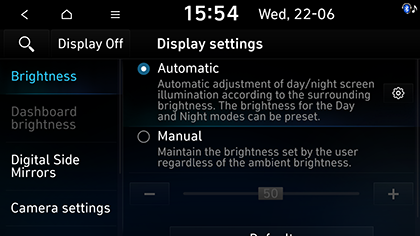 Digital Side Mirrors (jei yra): nustatomas vairuotojo ir keleivio skaitmeninių veidrodėlių ryškumas.