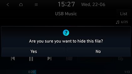 Galite slėpti dabar grojantį USB failą.