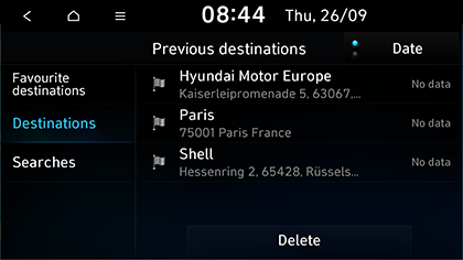 Galite pasirinkti paskirties vietą iš meniu Address book įrašytos vietos. Norėdami efektyviau panaudoti šią funkciją, paskirties vietas, kurias dažnai lankote, turėtumėte įrašyti iš anksto.
