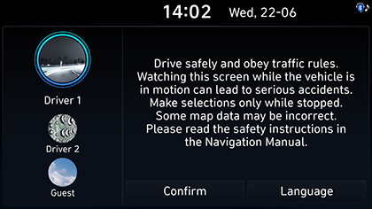 Dréckt Confirm nom Auswiele vu Driver 1, Driver 2 oder Guest. Fir weider Detailer kuckt Abschnitt „Profile“.