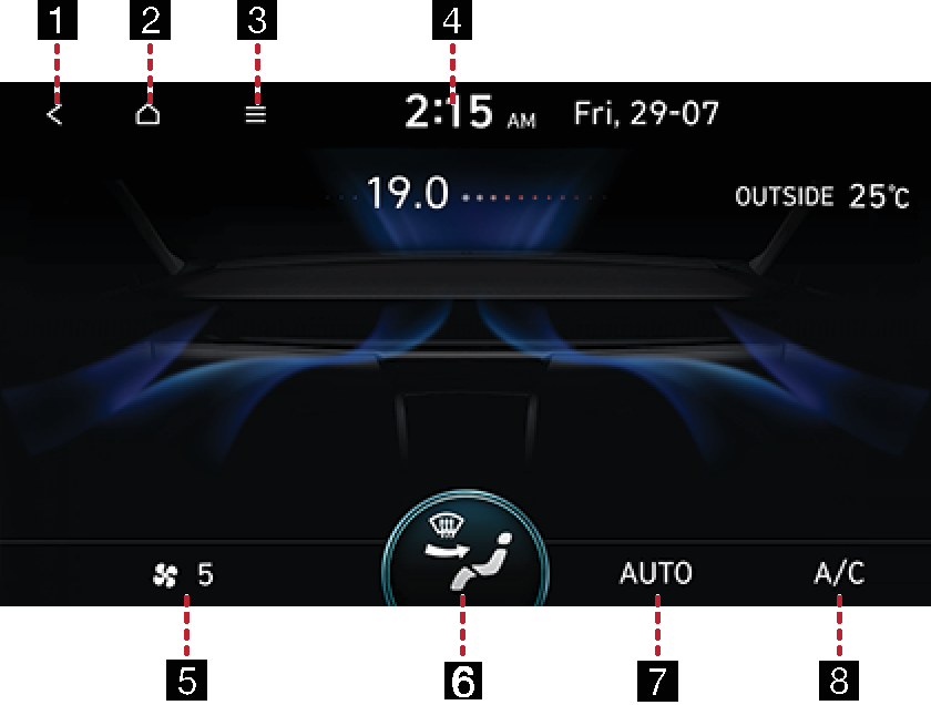 Wann AUTO aktivéiert ass, ginn de Blosniveau an d’Killung/Heizung automatesch jee no der festgeluechter Temperatur gereegelt.