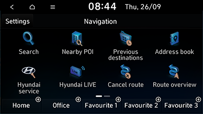 Dir kënnt d’Ariichtunge vu Hyundai als Destinatioun uginn. E puer Elementer an de Biller kënnen eventuell vum aktuelle Bildschierm ofwäichen, jee no Modell, Optioun a Land.