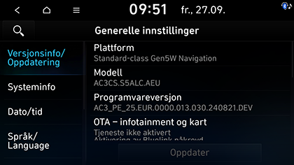 Trykk på SETUP > Generelt > Versjonsinfo/Oppdatering.