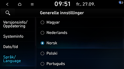 1. Trykk på SETUP > Generelt > Språk/ Language.