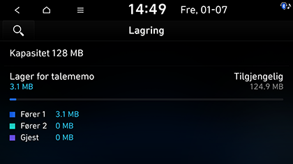 Du kan sjekke minneplass for talememo (Total lagringsplass, brukt minneplass, gjenværende minneplass).