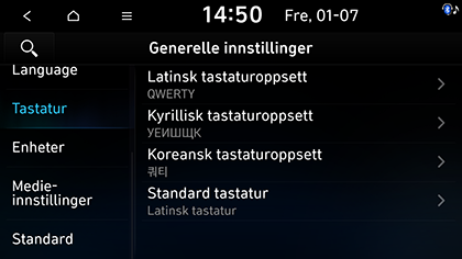 • Standard tastatur: Velg Latinsk tastaturoppsett, Kyrillisk tastaturoppsett, Gresk tastatur eller Koreansk tastaturoppsett.