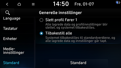 2. Du kan tilbakestille gjeldende profil eller hele systemet. Velg ønsket element og trykk på Standard > Ja.